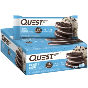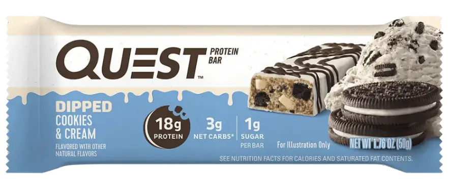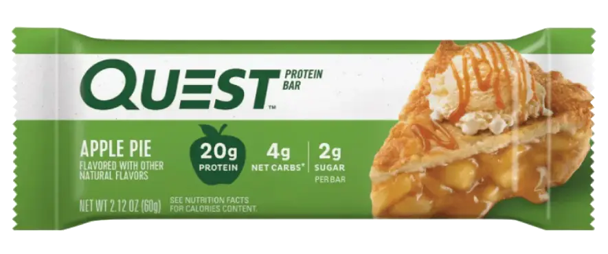 Quest™ Apple Pie Protein Bars provide the flavor of dried apple, with toffee and graham flavored pieces throughout. These delicious bars are topped with a white-chocolate flavored drizzle and have 20g of protein, 4g of net carbs and 2g of sugar per serving*.