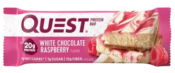 Indulge your taste buds with the White Chocolate Raspberry Quest Bar. The sweet and tart flavor of white chocolate and real dried raspberries are exactly what your cravings ordered. Keto-friendly.
